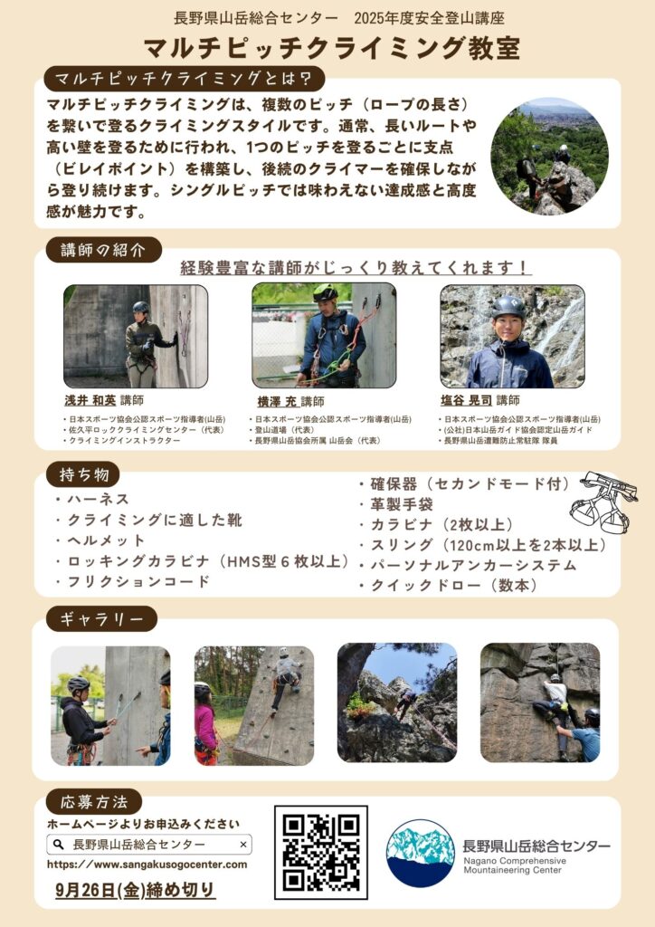 日程:1回目/10月4日(土)~5日(日)/長野県山岳総合センター人工岩場