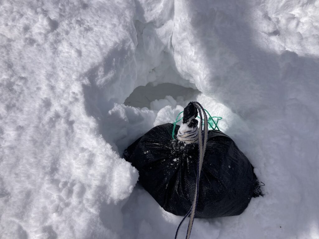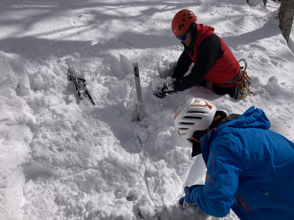 雪上における懸垂下降支点!