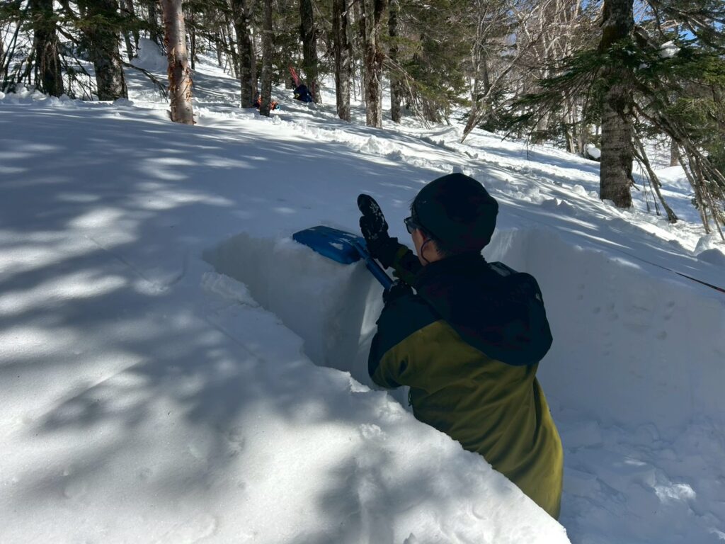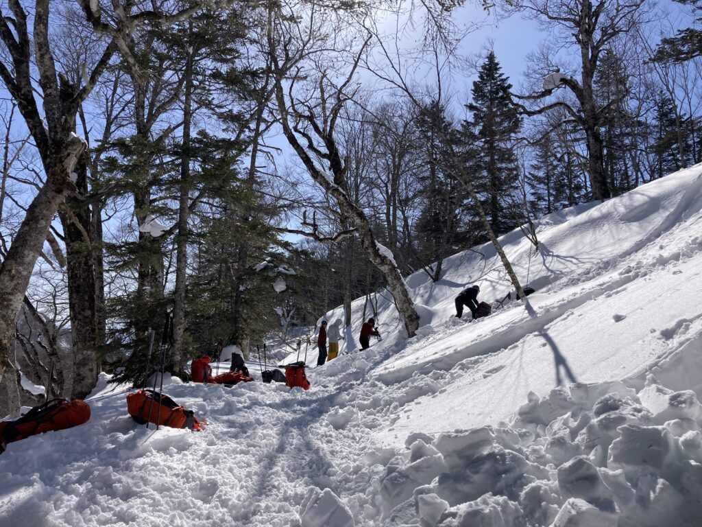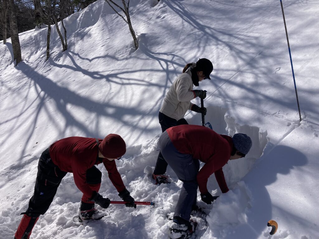 地形選択や積雪評価、気象観測などあらゆる角度から観察と考察をする手法を2日間みっちり学びました。