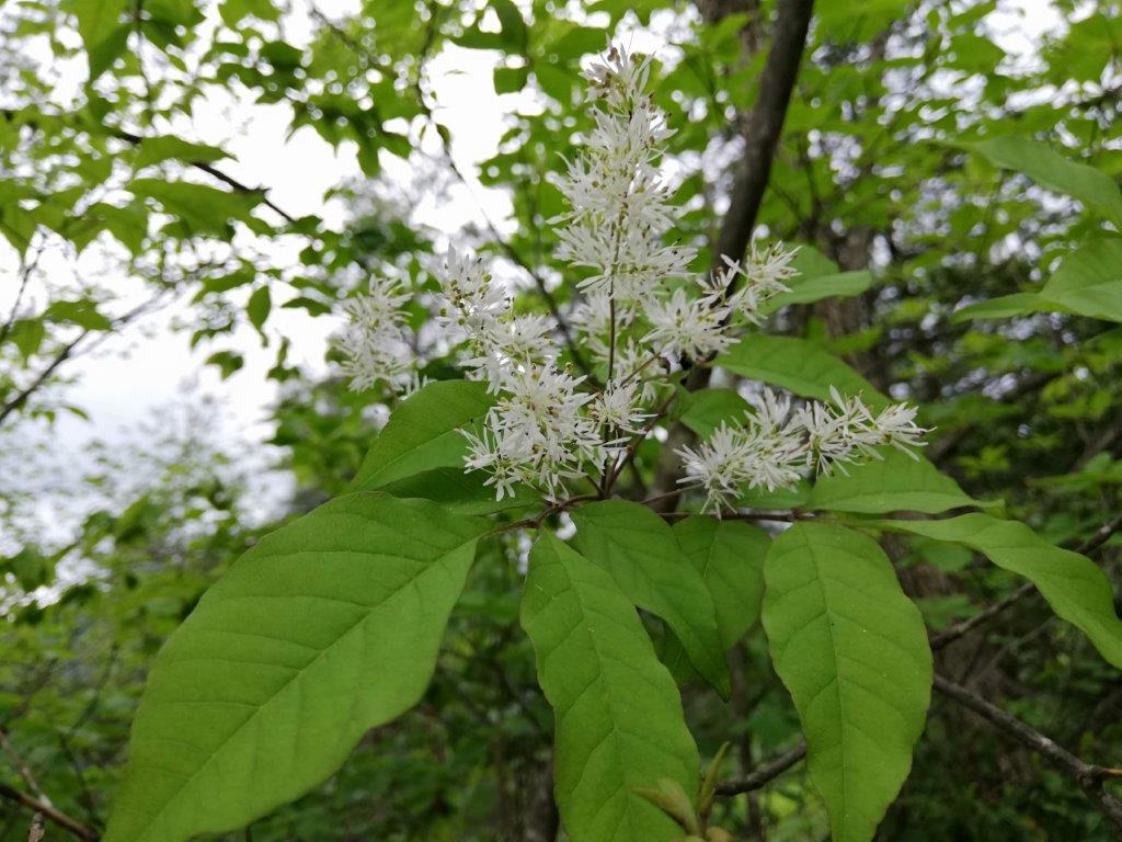 職員Aは道すがら、カモシカさんの形跡や、花などをチェック。