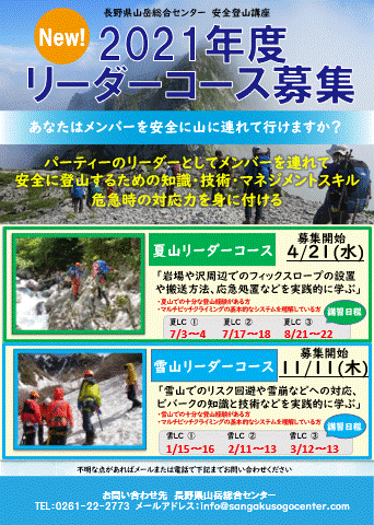 長野県山岳総合センターは、長野県の教育機関として、安全登山の普及・啓発に関する各種事業を行っています