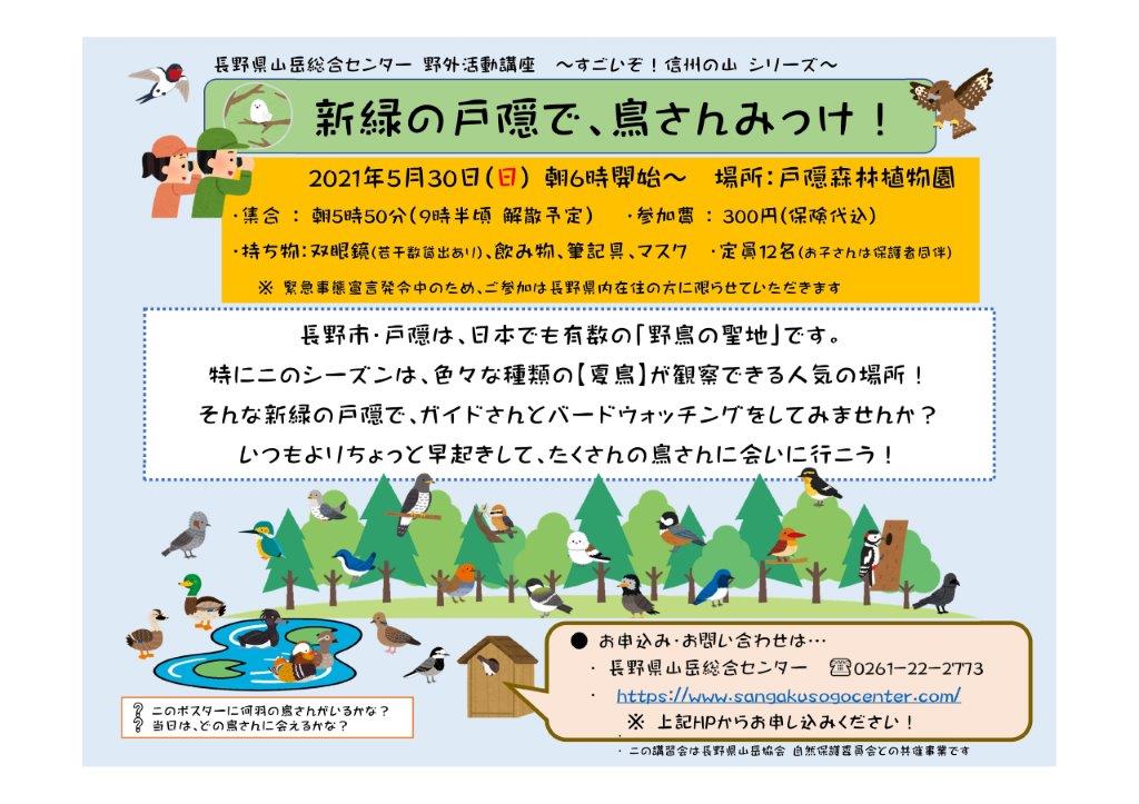「新緑の戸隠で、鳥さんみっけ!」と題し、野鳥観察会を行います!!
