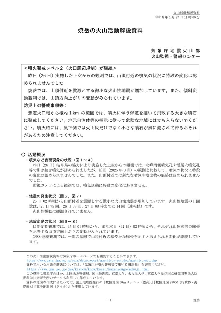 焼岳の噴火レベルが、25日5時50分に「2」に引き上げられたことを受けて、昨日27日の11時に、気象庁から最新の活動解説資料が発表されています。